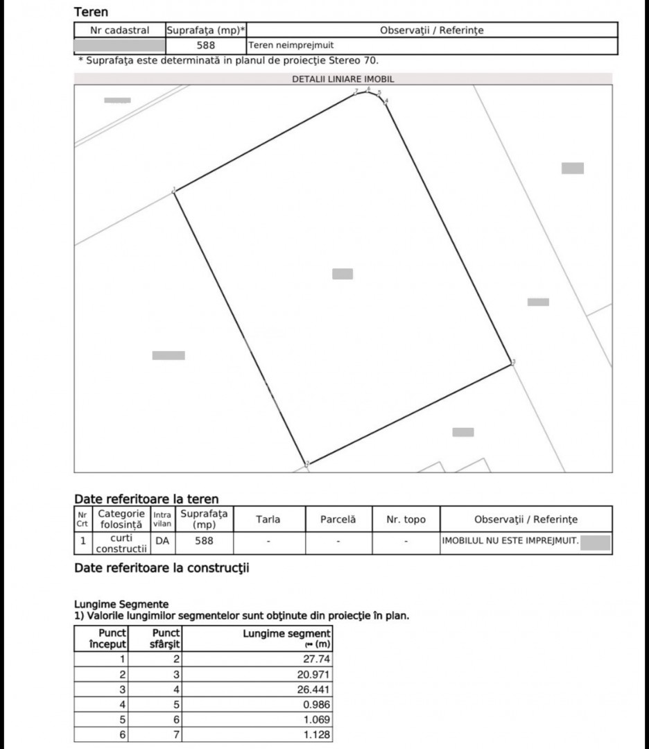 - Terenul se afla intr-o zona aparte nou dezvoltata, reper str Lunga si strada Privighetorii. fiind retras de la strada principala, iar ca si avantaje dispune de suprafata plana si deschidere la 2 strazi, acesta fiind pozitionat pe colt si fiind un mare avantaj pentru constructia de imobil individual, tip duplex sau cuplat, deschiderea acestuia la strada fiind de 20,9 metri / 27,74 metri.